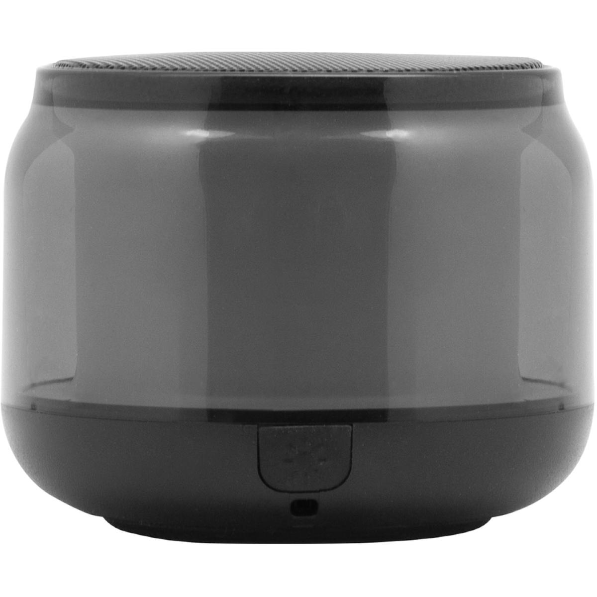 Diametro: 7,5 x 6 cm. Parlante Bluetooth estéreo. ABS transparente con malla metálica en la parte superior. Botones en color negro. Led que cambia entre 7 colores y 8 modos de luz para elegir. Potencia 3W. Versión Bluetooth: 5.0. capacidad de la batería: 500 mAh. Cable de carga y conexión USB-C en color negro. Presentación en caja de regalo.