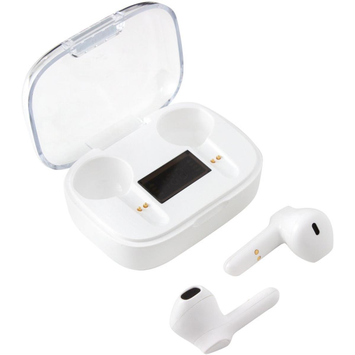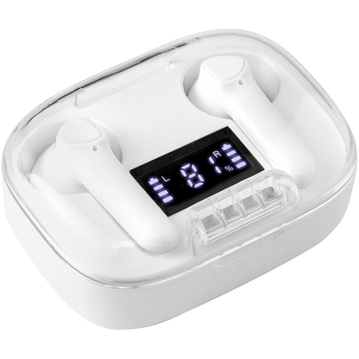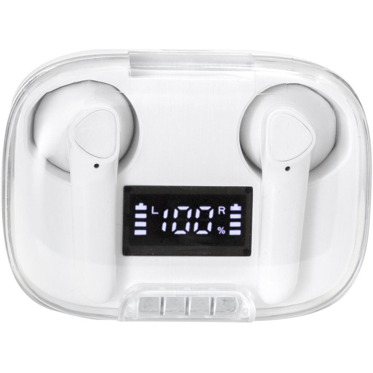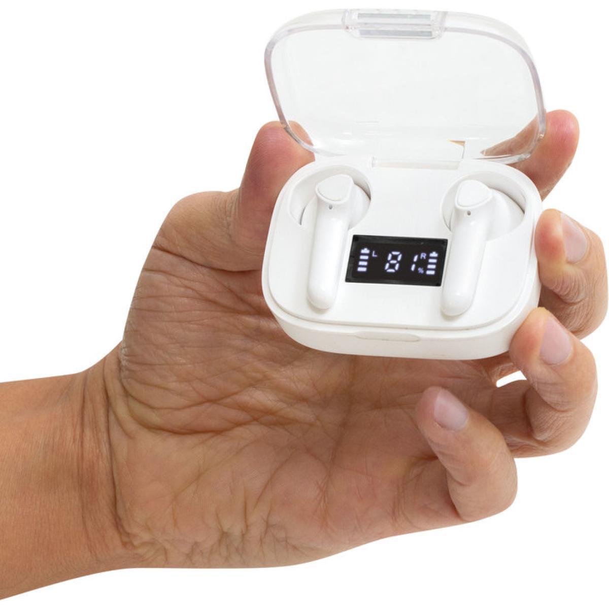 Sonido nítido, sin cablesAudífonos Bluethooth. Pantalla digital y tapa transparente. Rango de alcance: 15 metros. Tiempo de reproducción: aprox. 3 horas. Tiempo de Carga: 1 hora Duración de la carga en inactividad: 200 horas. Cable de carga USB tipo C en color blanco para audífonos blancos, y en color negro para la versión en negro. Medidas: 6 x 4,5 x 2,5 mm.
