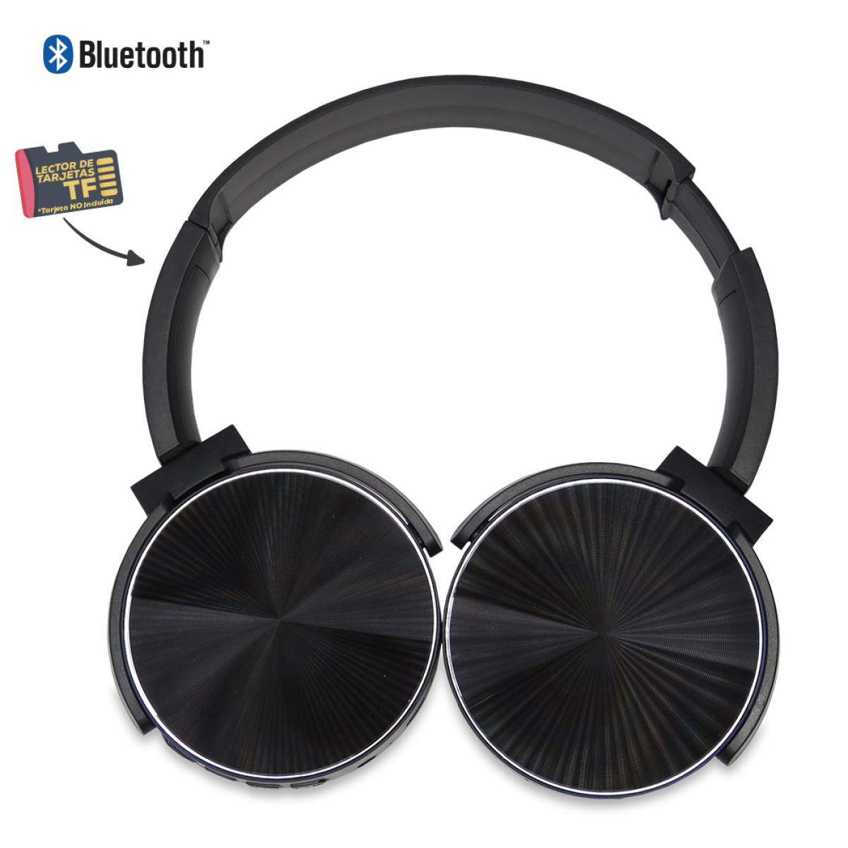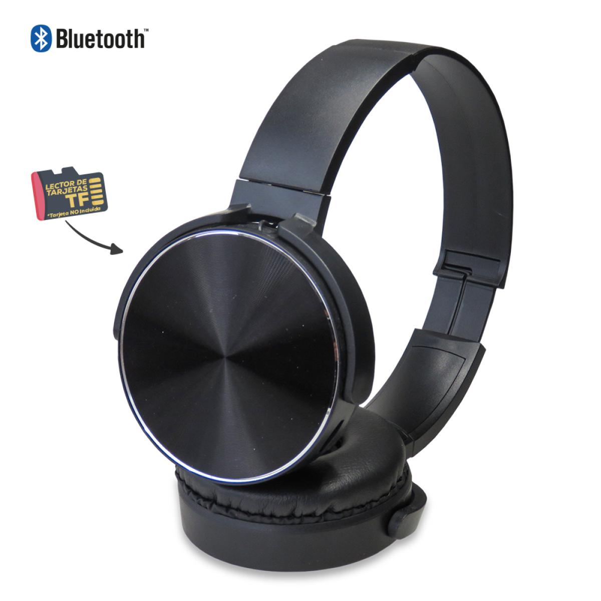 Audífonos Bluetooth plásticos tipo Headphone con auriculares acolchados, lector de tarjeta TF (Tarjeta no incluida).
