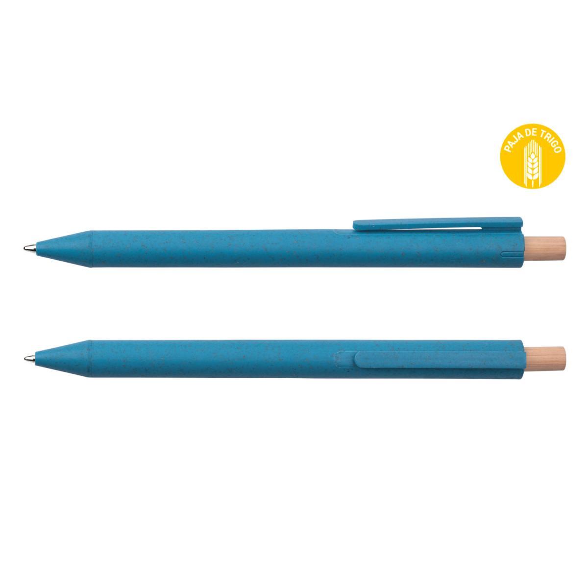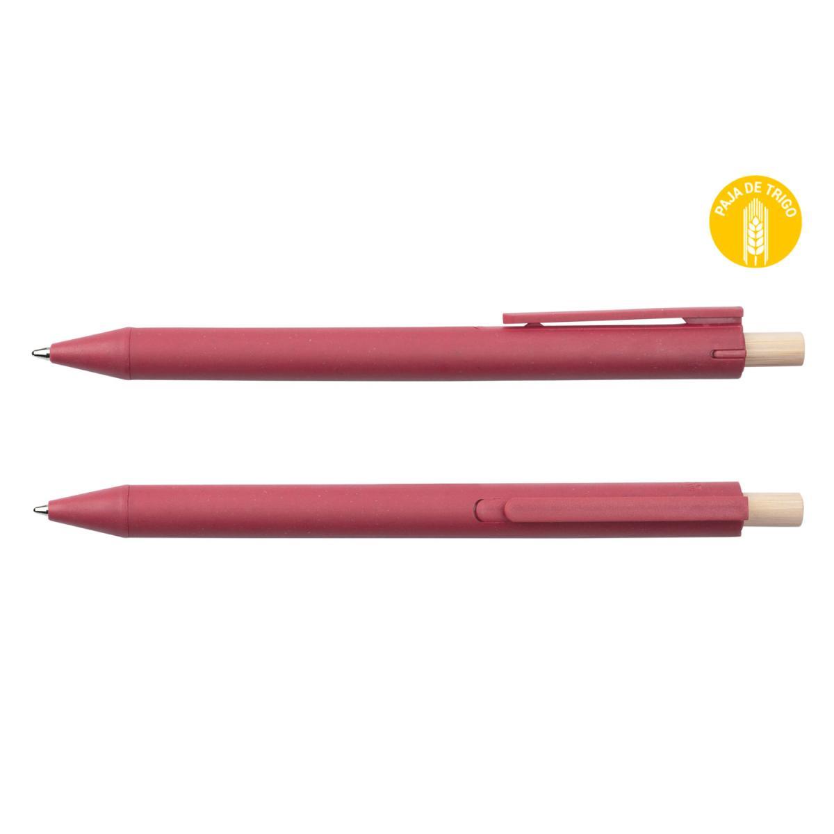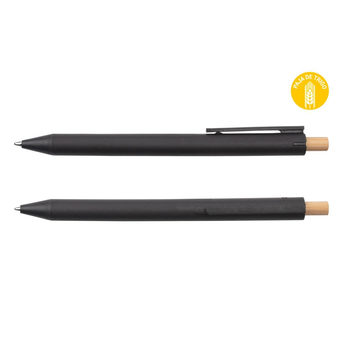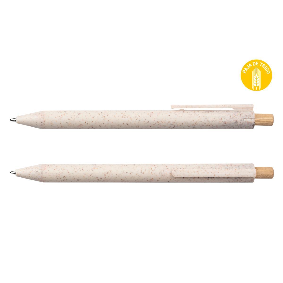 Bolígrafo con clip hecho con paja de trigo, sistema de apertura con botón retráctil de bambú.