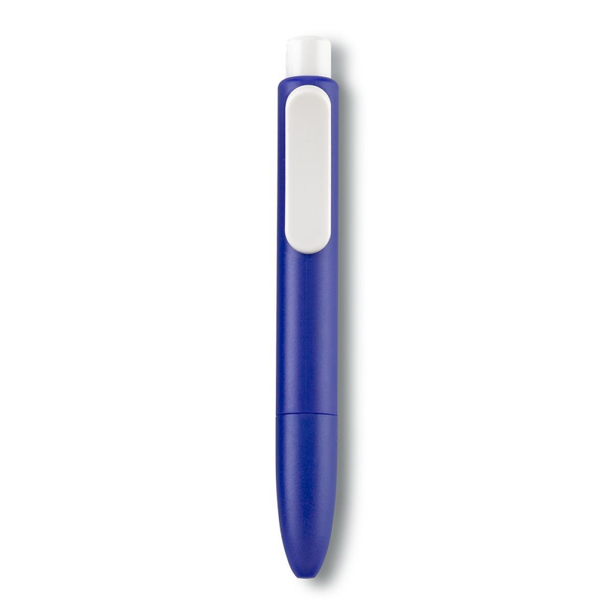 Mini bolígrafo de plástico con práctico mecanismo push y clip sujetador. Su tamaño compacto lo hace ideal para llevar en bolsos, estuches o agendas. Perfecto como accesorio promocional o para el uso diario con estilo y funcionalidad.
