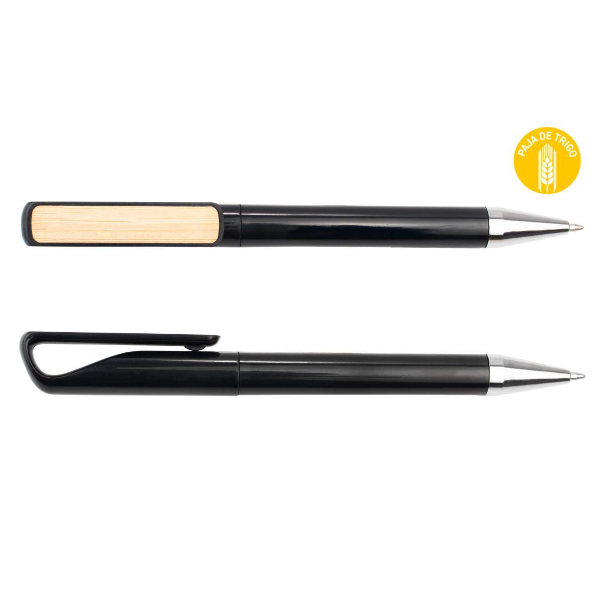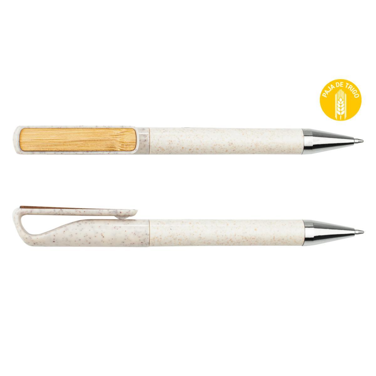 Bolígrafo Bolzano con Clip de Paja y Botón de Bambú