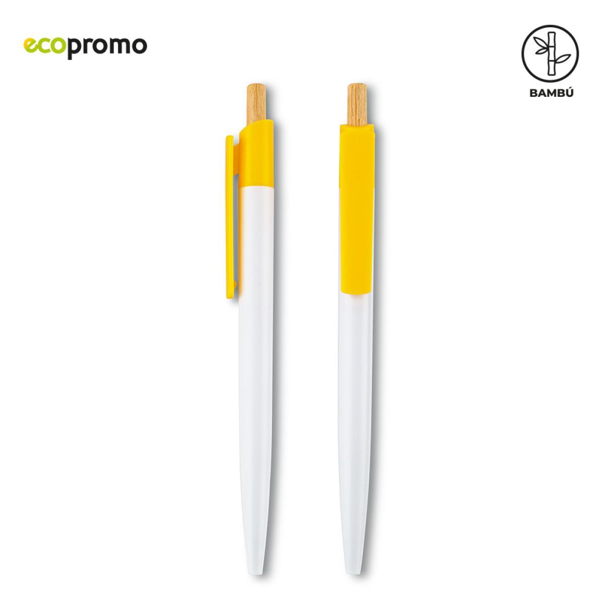 Bolígrafo Allegro con mecanismo push, cuerpo en plástico resistente y detalles en bambú natural. Ideal para uso diario y promociones ecológicas con estilo y funcionalidad. Mide 14 cm y combina durabilidad con elegancia.