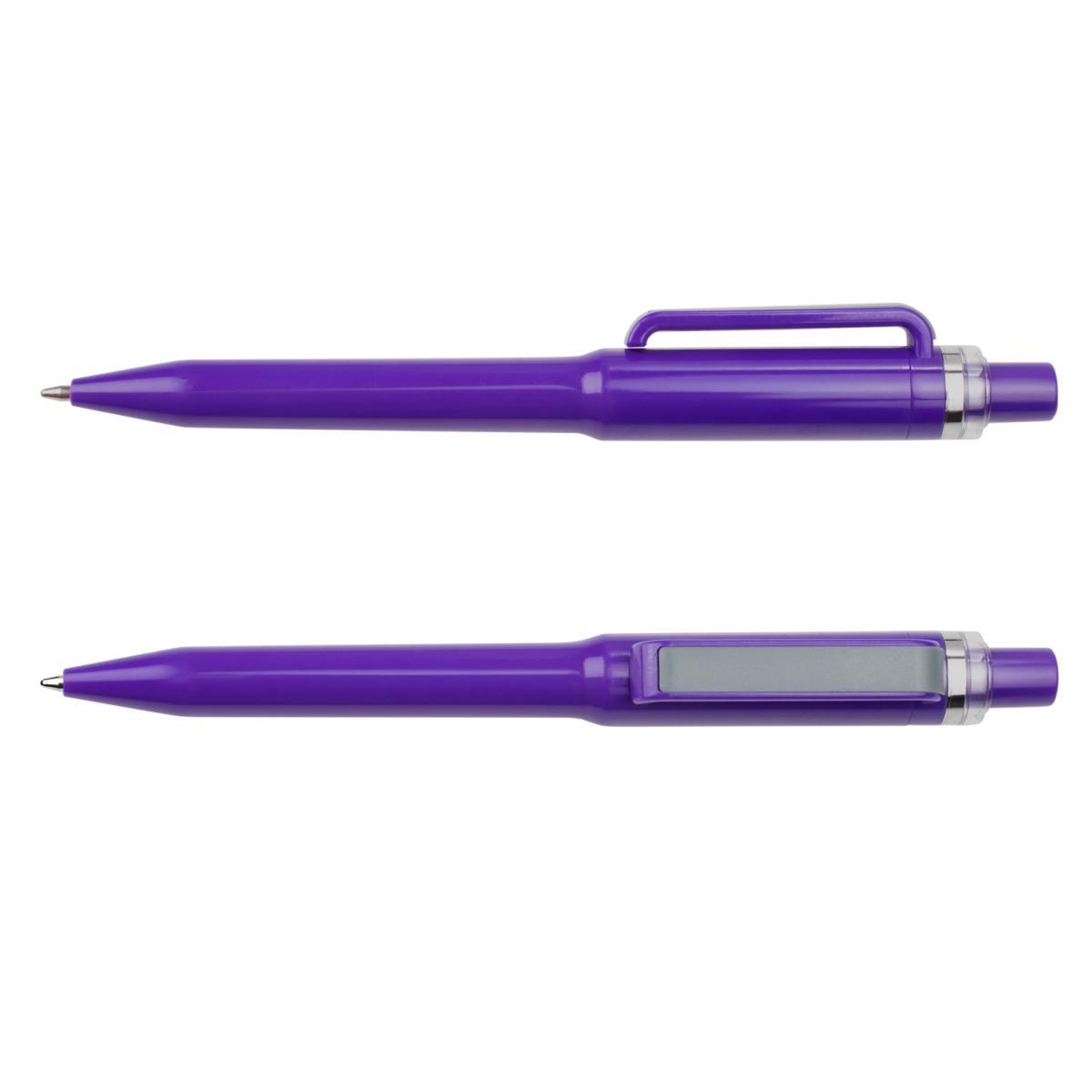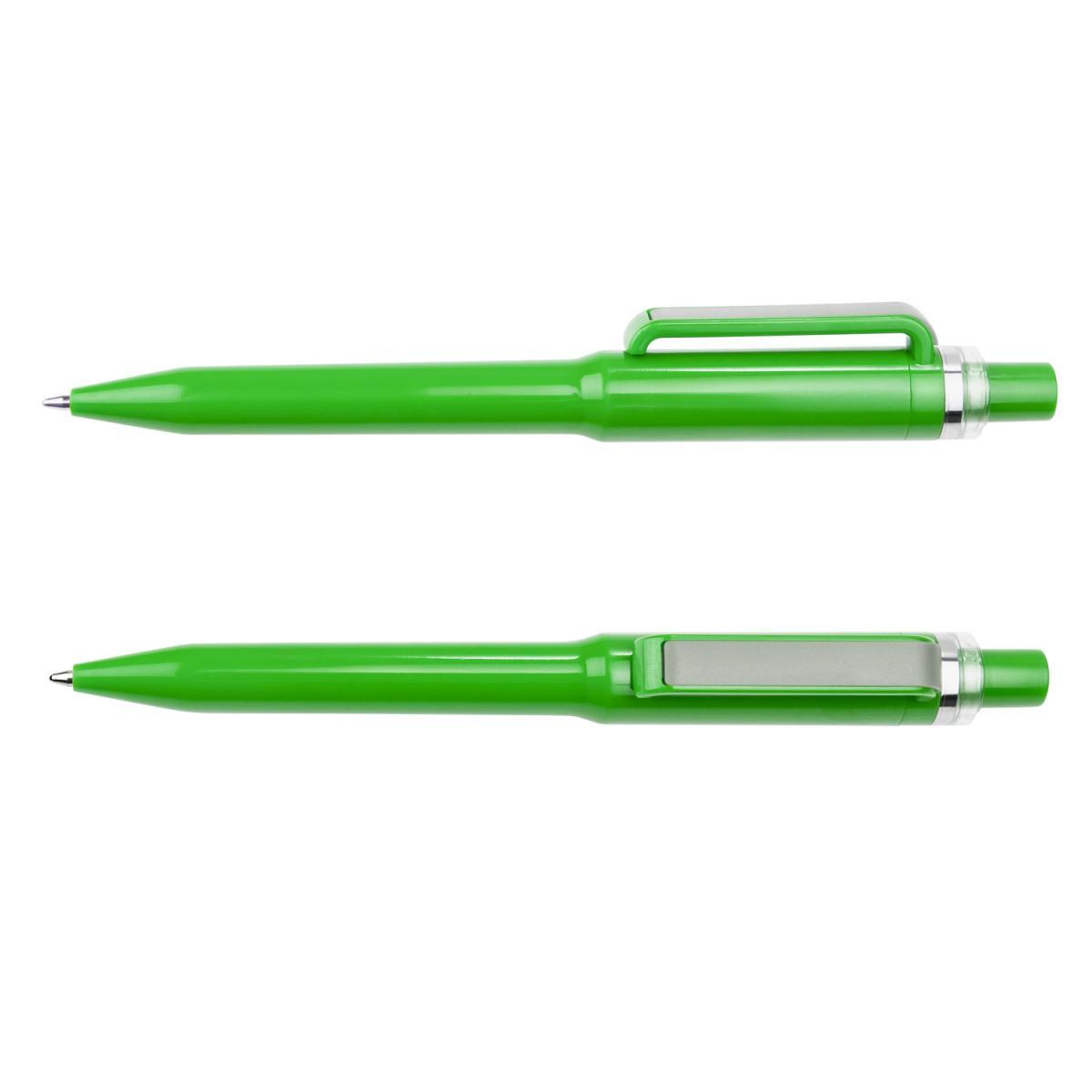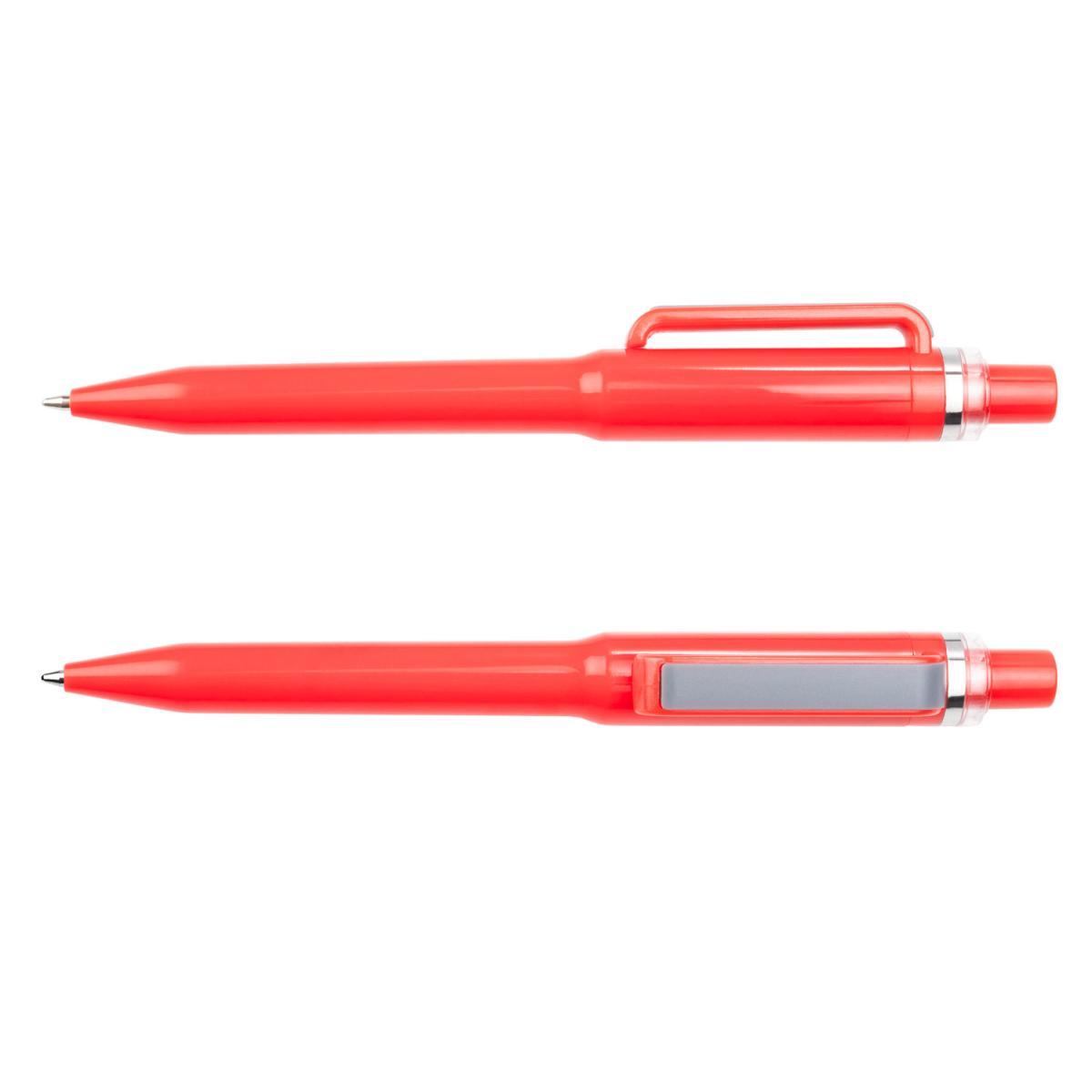 Bolígrafo de plástico con cuerpo en color sólido y diseño moderno. Incorpora sistema retráctil y clip de inserción con borde gris que aporta un detalle sutil y elegante. Ideal para uso diario en oficina, estudio o reuniones.