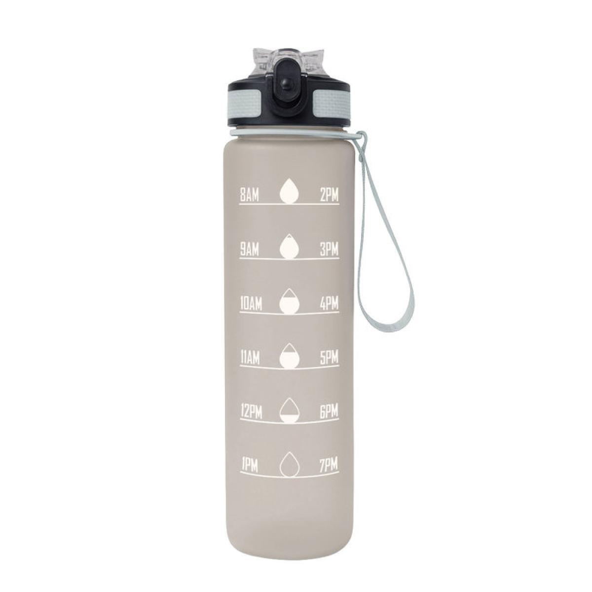 Tu compañera de cada desafíoBotella con marcador de tiempo y medida. Color pastel con acabado frost. Tapa plástica combinada en color negro con el de la botella. Apertura rápida, boquilla transparente rebatible y sorbete incluído. Correa del mismo color de la botella.Medidas: Diametro: 7 x 28cm. (con tapa)