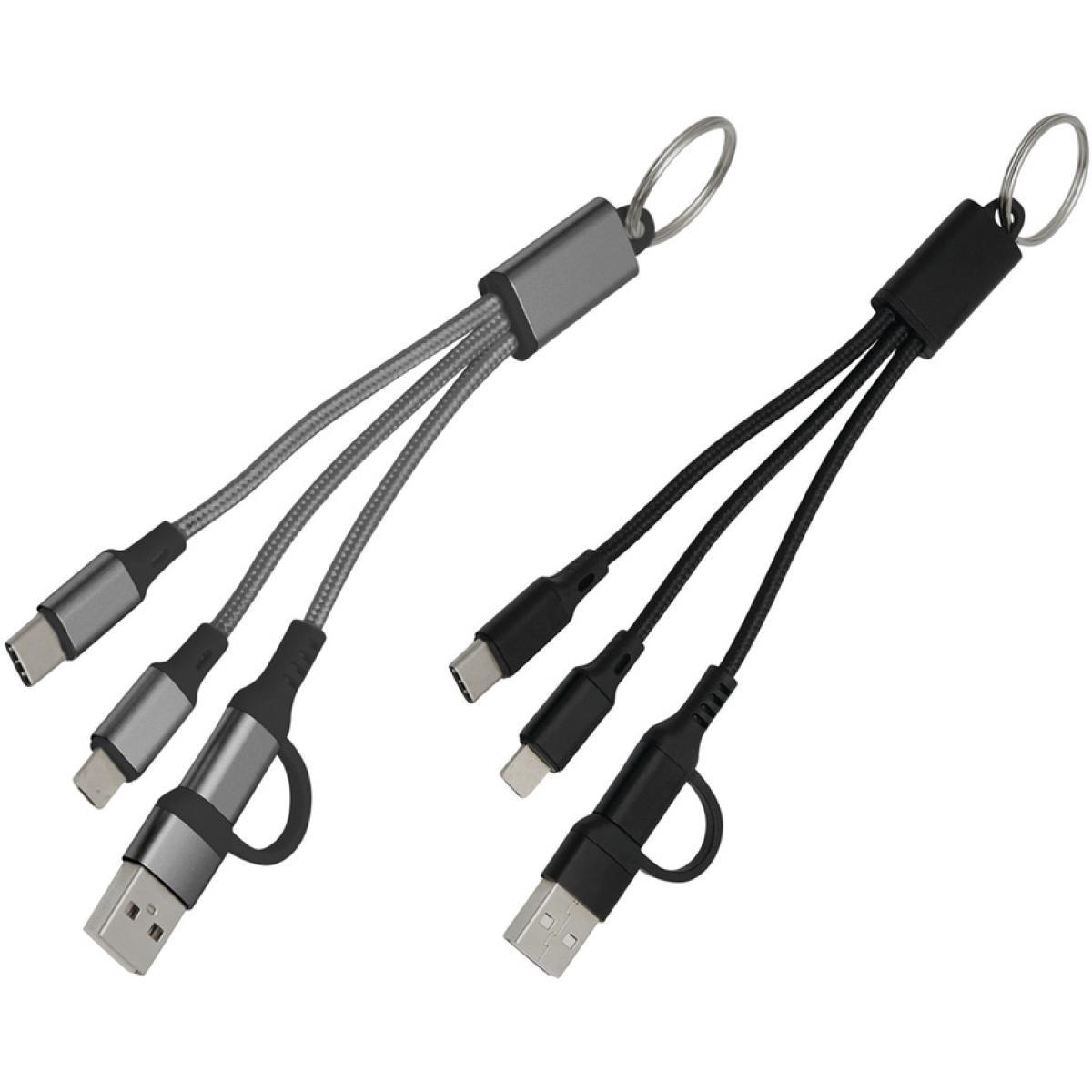 Todo lo que necesitas al alcance de tu manoCable de carga con llavero. Entrada: 2 en 1 (USB + USB tipo C). Salida: USB tipo C + lightning.Medidas: 15,5 cm.