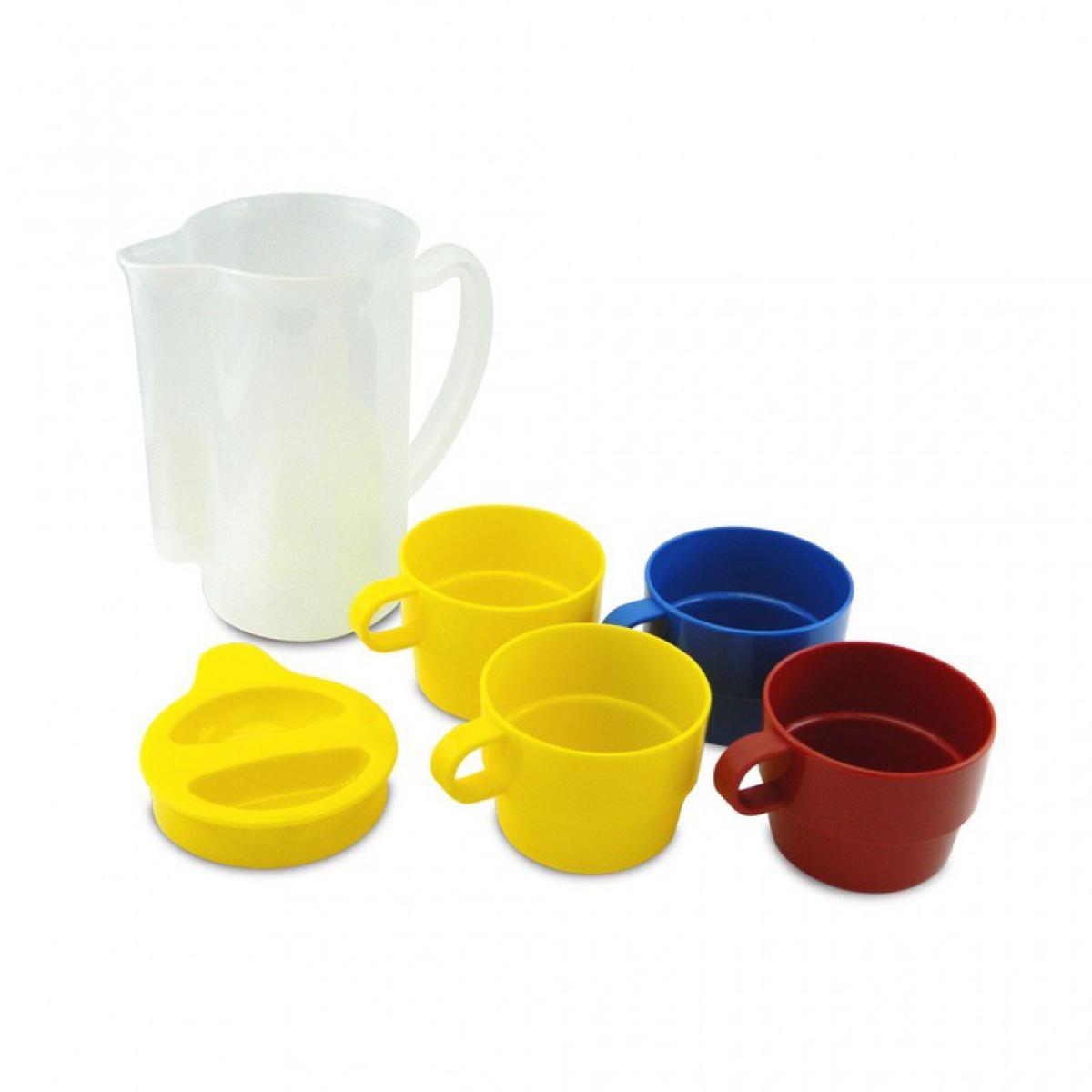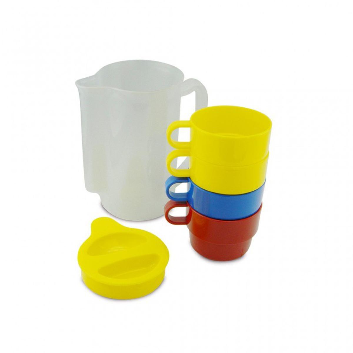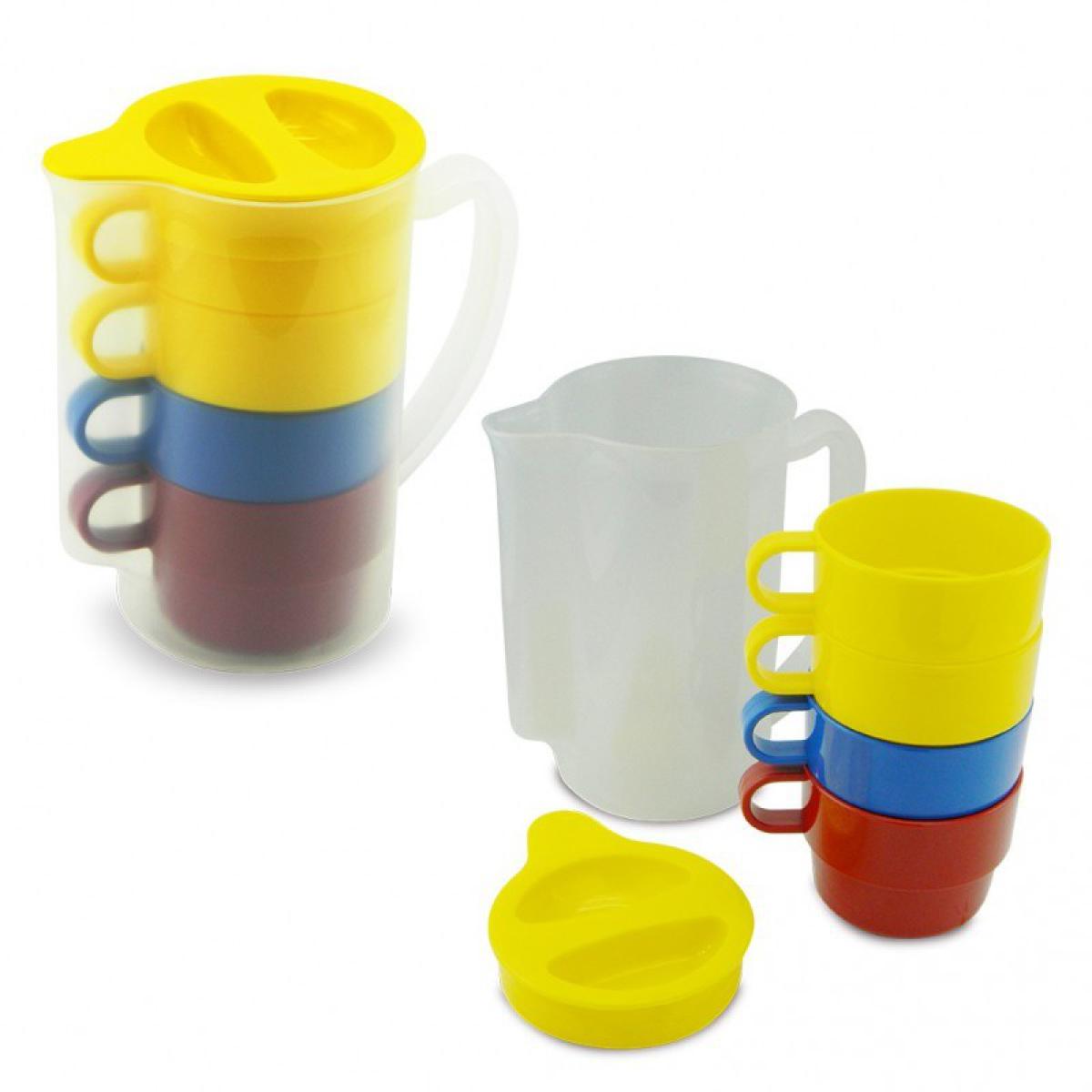 Jarra conmemorativa del Mundial Brazil 2014 de Colombia, incluye 4 pocillos de 7oz. Capacidad de 1 litro, fabricada en plástico resistente y duradero. Ideal para celebrar y recordar el Mundial.