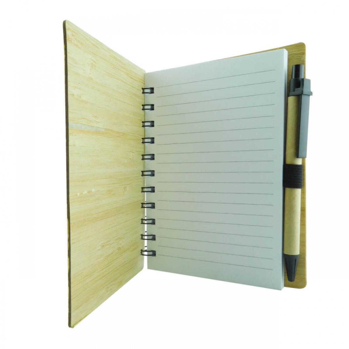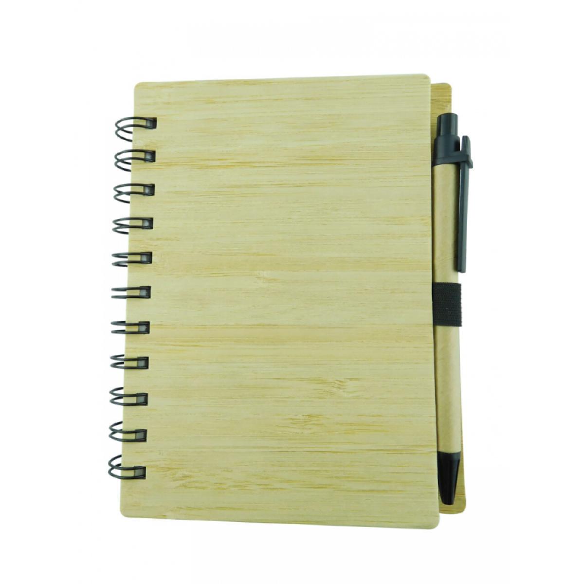 Elaborada en bambú Hojas rayadas. Argollada, incluye esfero Ecológico.