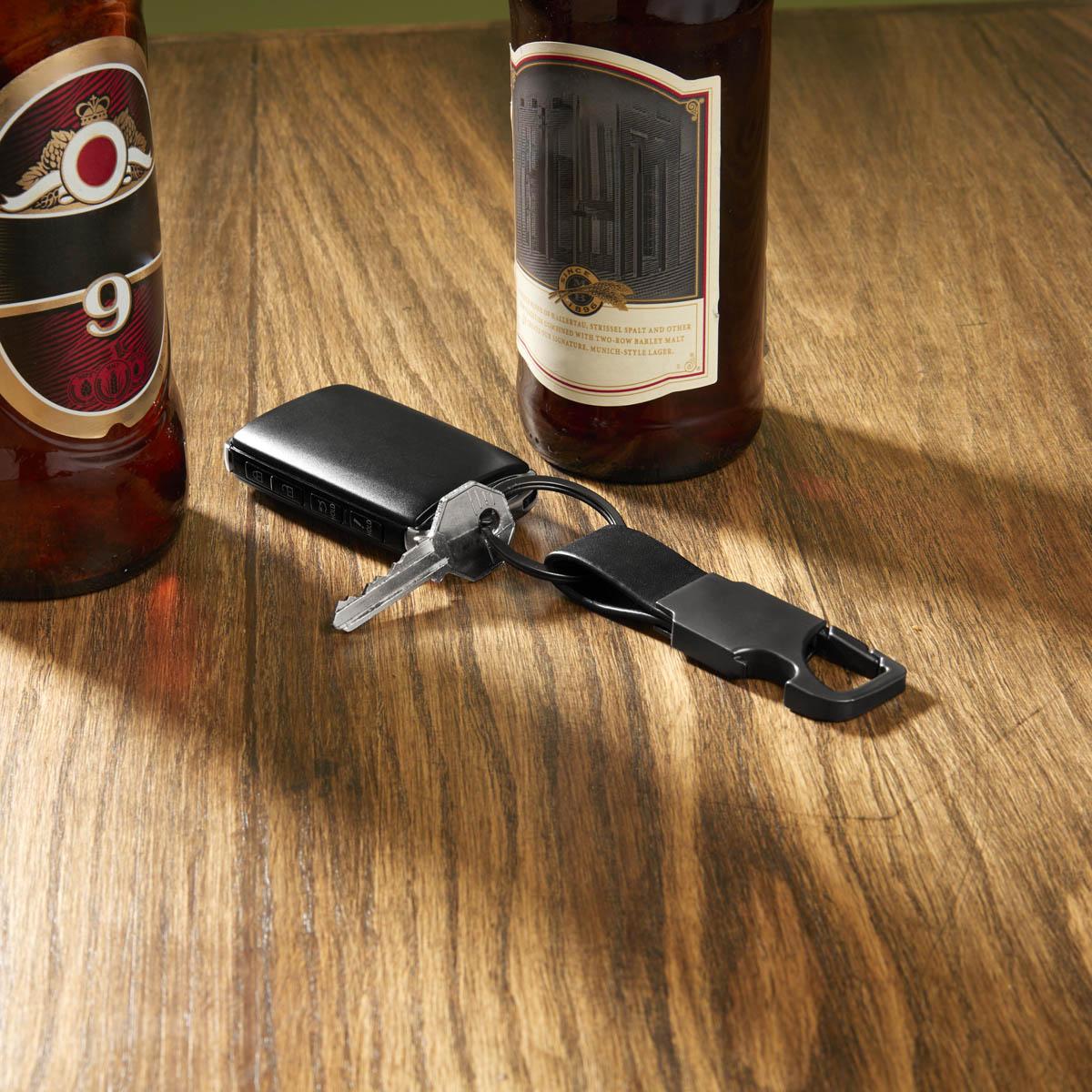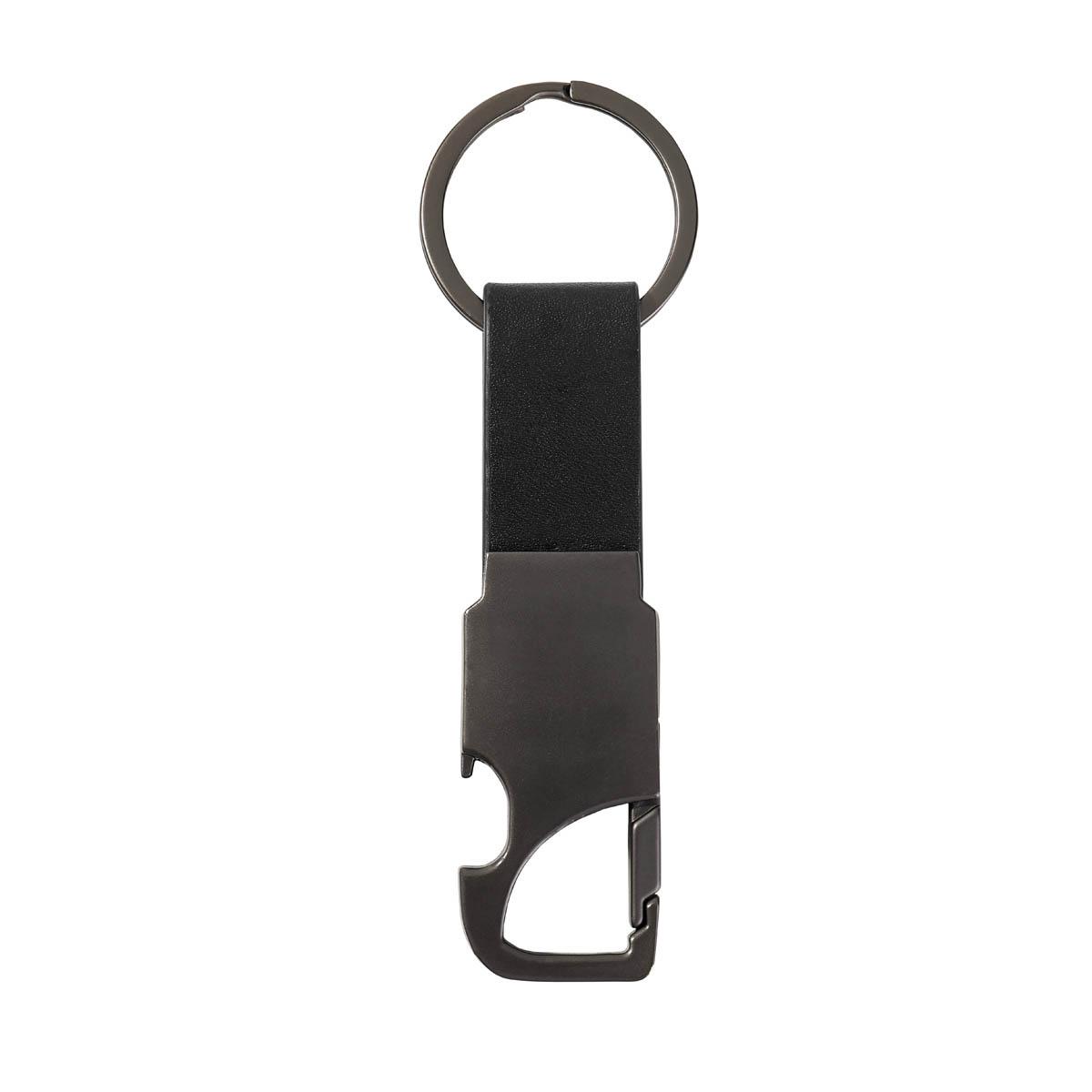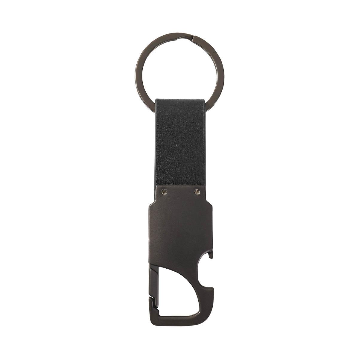 Llavero metálico con correa de curpiel y destapador. Mantén tus llaves organizadas con este accesorio versátil y compacto. Incluye gancho tipo mosquetón para mayor seguridad y accesibilidad.
