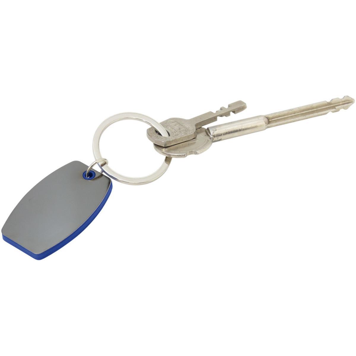 Refleja distinciónLlavero con forma ovalada. Estructura plástica de color con apliques de acero color gris gun de cada lado. Acabado brillante.Medidas: 5 x 3 x 0,35 cm. LLavero de Diametro: 3,5 cm x 0,2 cm.