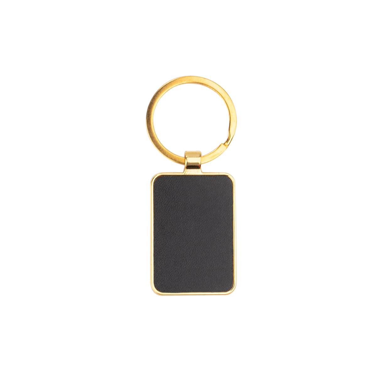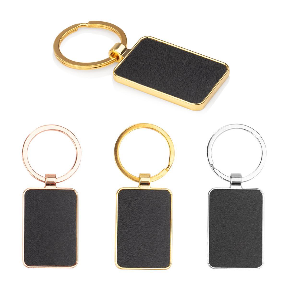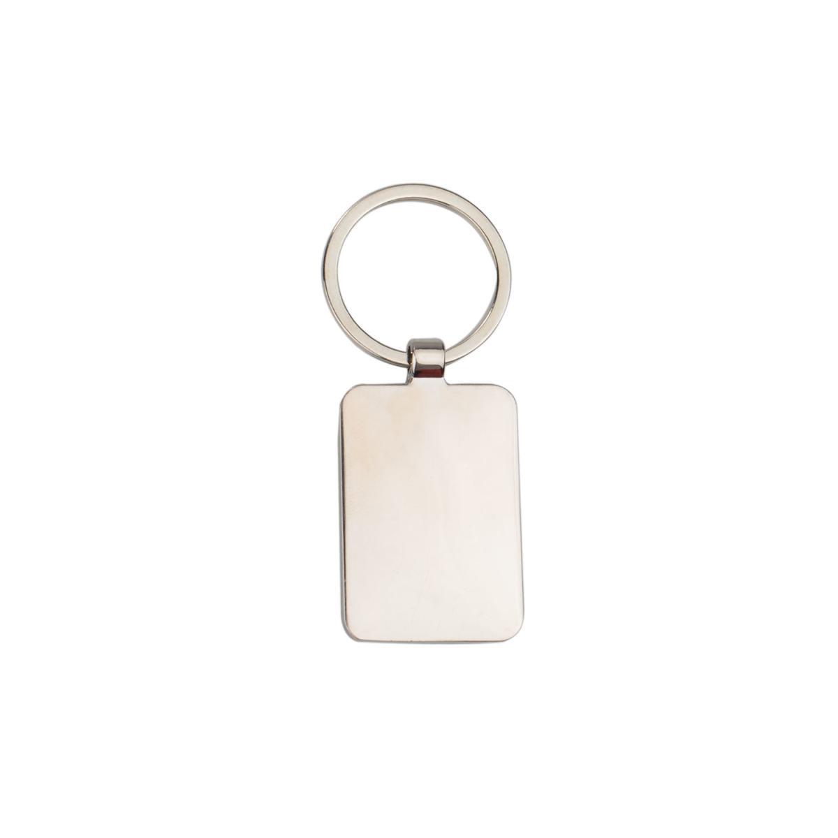 Llavero metálico de color rosa con forma rectangular, ideal para llevar tus llaves con estilo. Su superficie oscura permite personalización con grabados o marcas. Perfecto para añadir un toque único a tus llaves.
