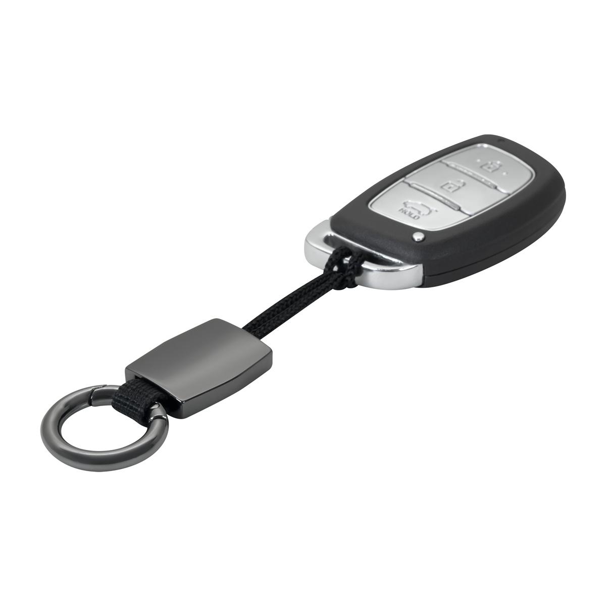 Llavero metálico con argolla tipo mosquetón. Correa diseñada especialmente para llaves de automóviles con ranura estrecha. Este práctico llavero te permite sujetar tus llaves de manera rápida y sencilla. Incluye caja individual.