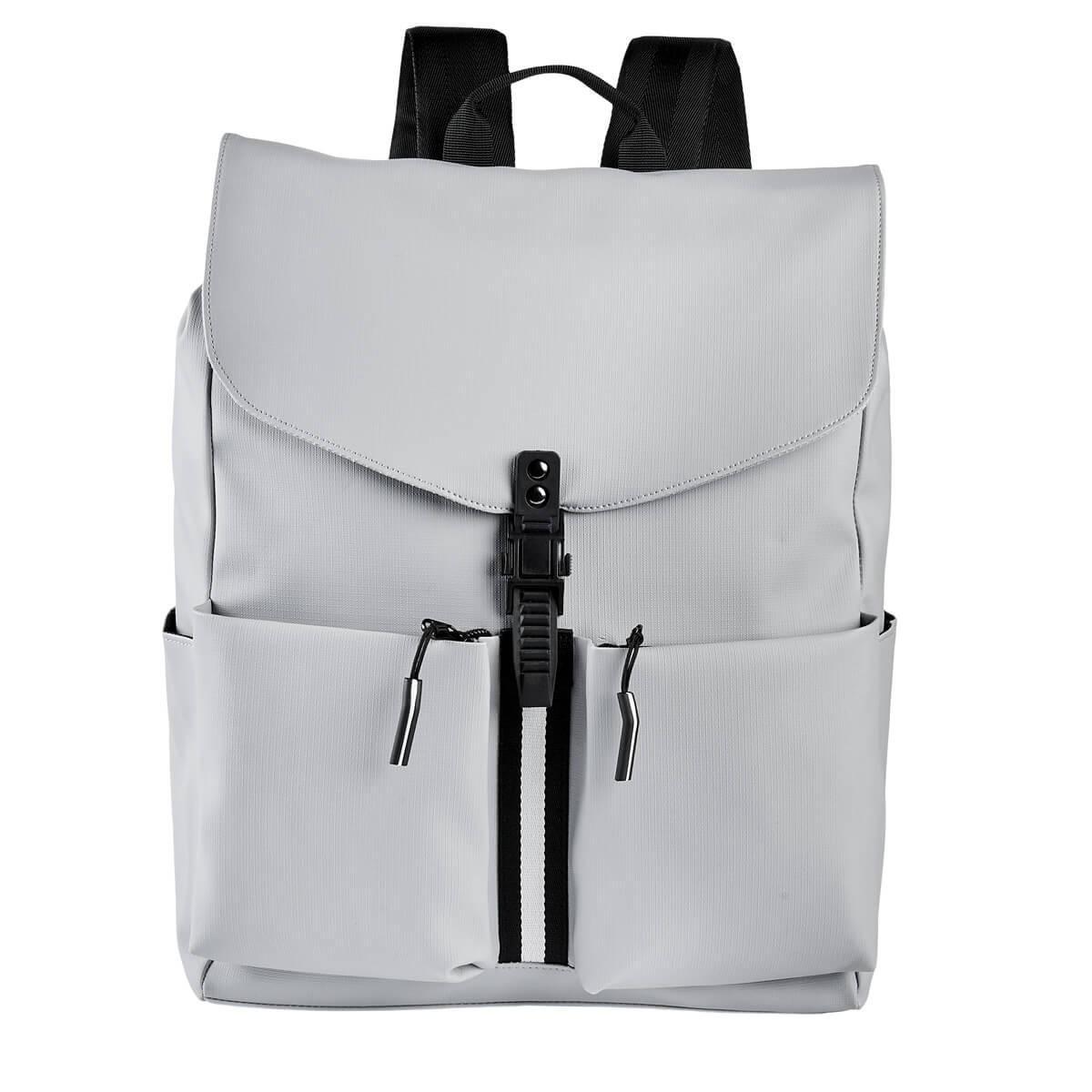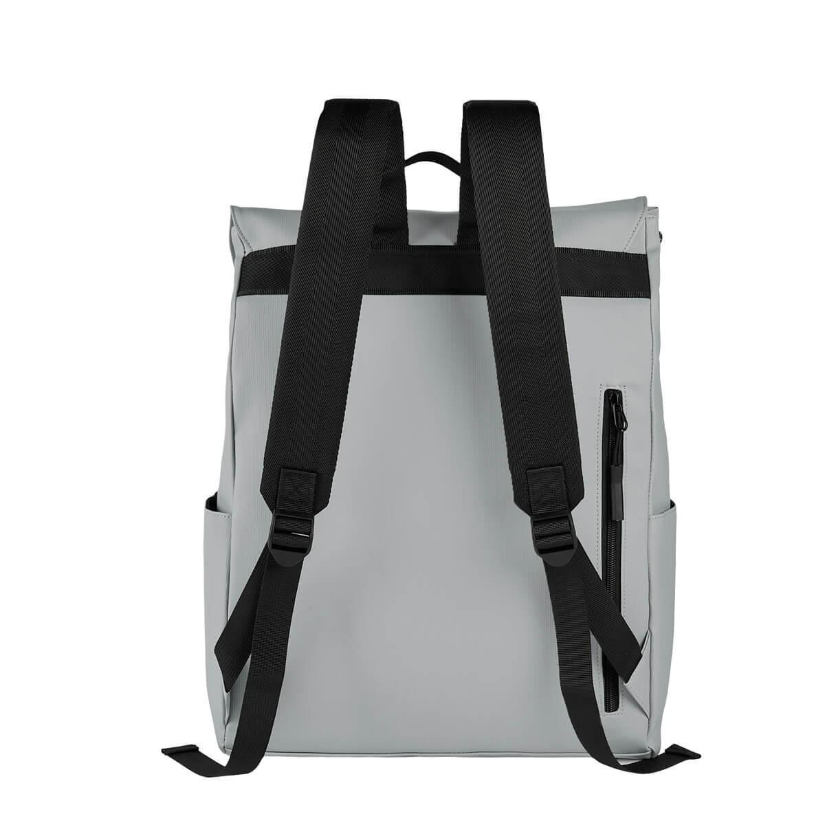 Mochila ejecutiva de diseño moderno que combina estilo y funcionalidad. Su solapa superior con broche de plástico, garantiza un cierre seguro, mientras que los broches metálicos laterales, permiten expandir el compartimento principal para obtener mayor espacio si asi lo necesitas. Cuenta con un compartimento especial para laptop de hasta 15 pulgadas, dos bolsillos frontales con cierre para objetos pequeños, mientras que sus bolsillos laterales, son adecuados para botellas o artículos de uso frecuente. En la parte posterior, incluye un bolsillo de se seguridad con cierre, ideal para guardar pertenencias de valor. Una opción prácitica para quienes buscan organización con un toque profesional.