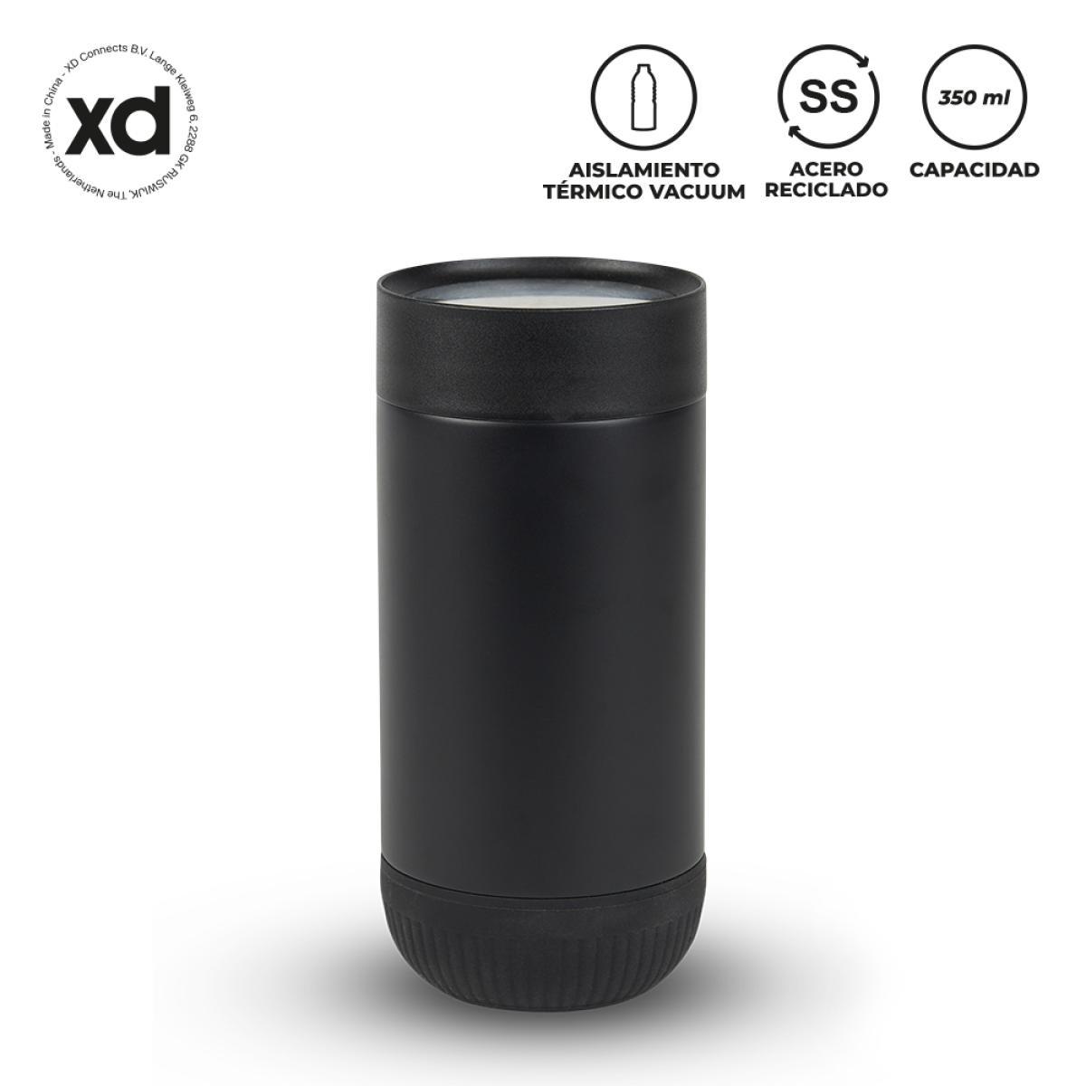 Mug metálico Vinga Eco de 350ml con doble pared vacuum en acero inoxidable reciclado. Mantiene tus bebidas frías hasta 10 horas y calientes hasta 4 horas. Cuenta con tapa de rosca push y base de caucho para mayor estabilidad.