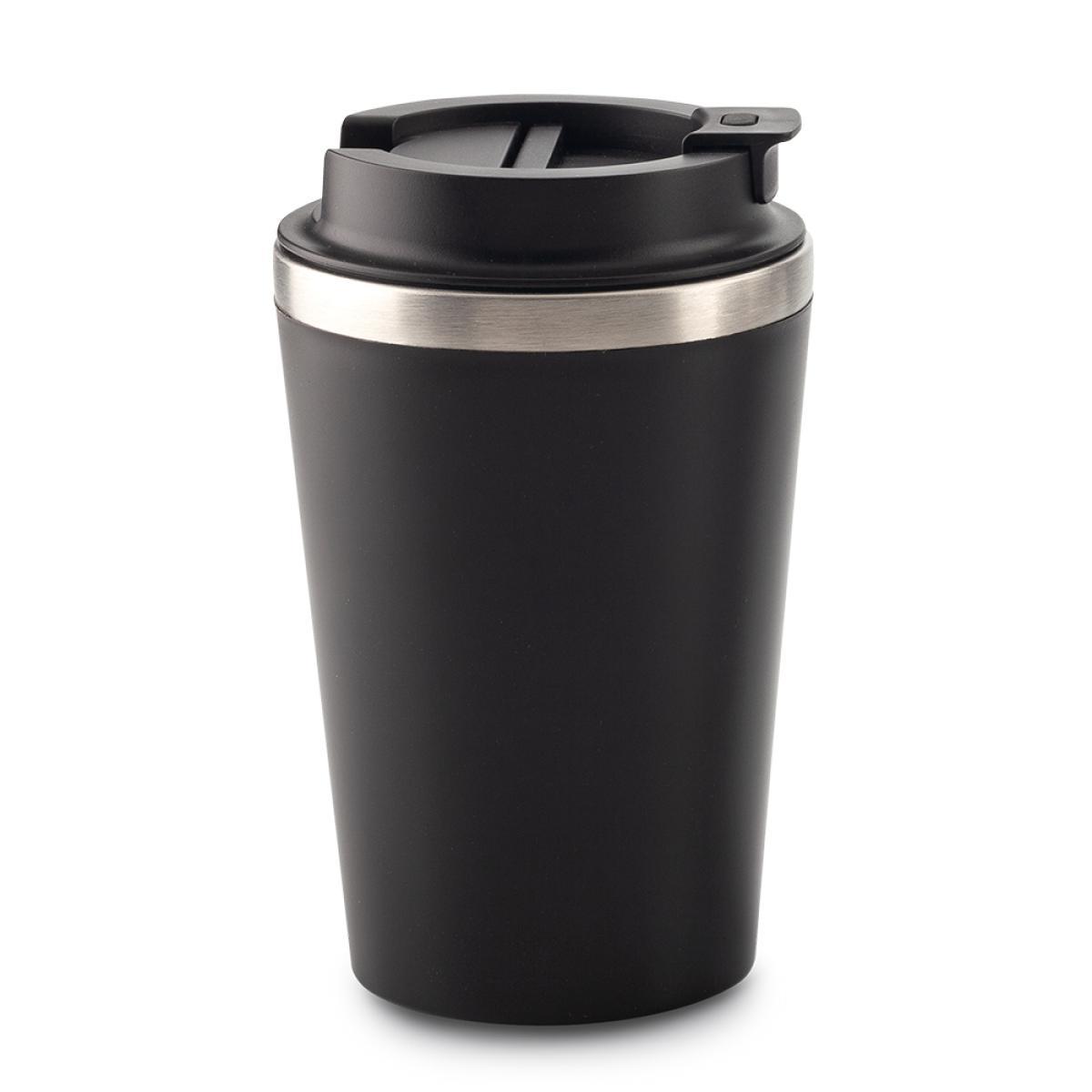 Mug de 350 ml con exterior en plástico resistente e interior en acero inoxidable que ayuda a conservar la temperatura de tus bebidas. Cuenta con tapa rosca de seguridad que evita derrames, ideal para llevar en movimiento. Se entrega en caja individual, perfecto como obsequio corporativo o de uso personal.