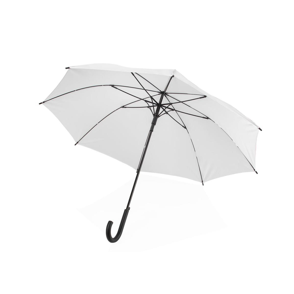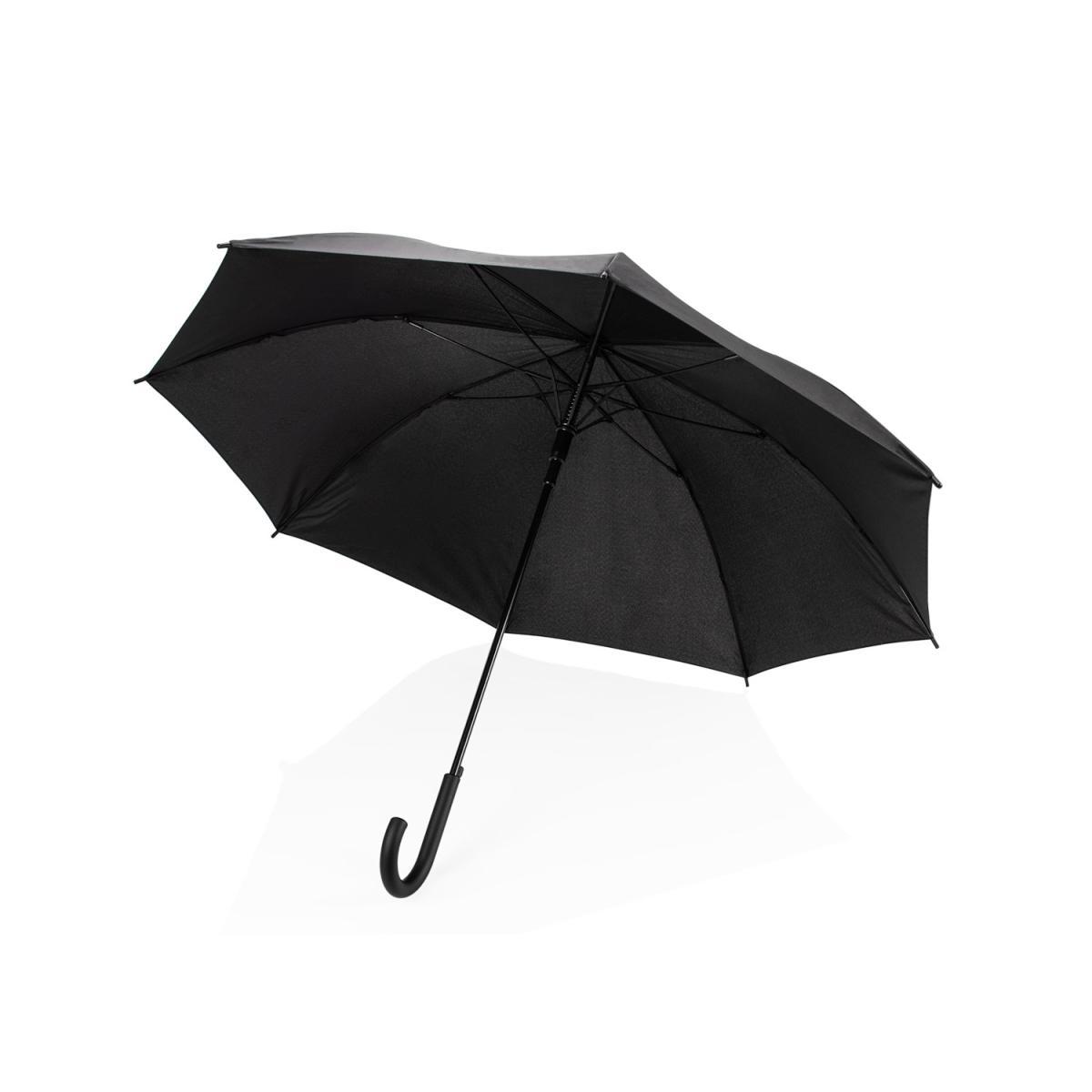 Paraguas recto de 23″ con apertura automática y estructura de fibra de vidrio resistente. Cuenta con función antiviento y mango curvo soft touch para un agarre cómodo. Tela de poliéster pongee 190T que ofrece durabilidad y protección contra el clima.