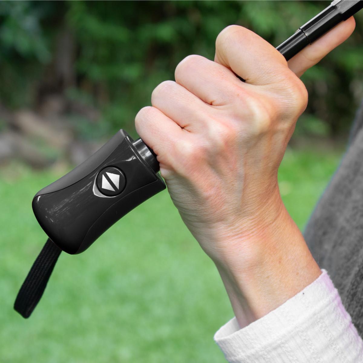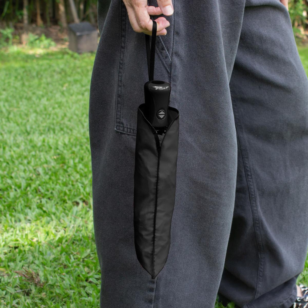 El Paraguas Robin Compacto ofrece apertura y cierre automático para mayor comodidad. Cuenta con un mango engomado antideslizante y varillas de fibra resistentes. Su cubierta de poliéster pongee 190T garantiza durabilidad y protección contra la lluvia.