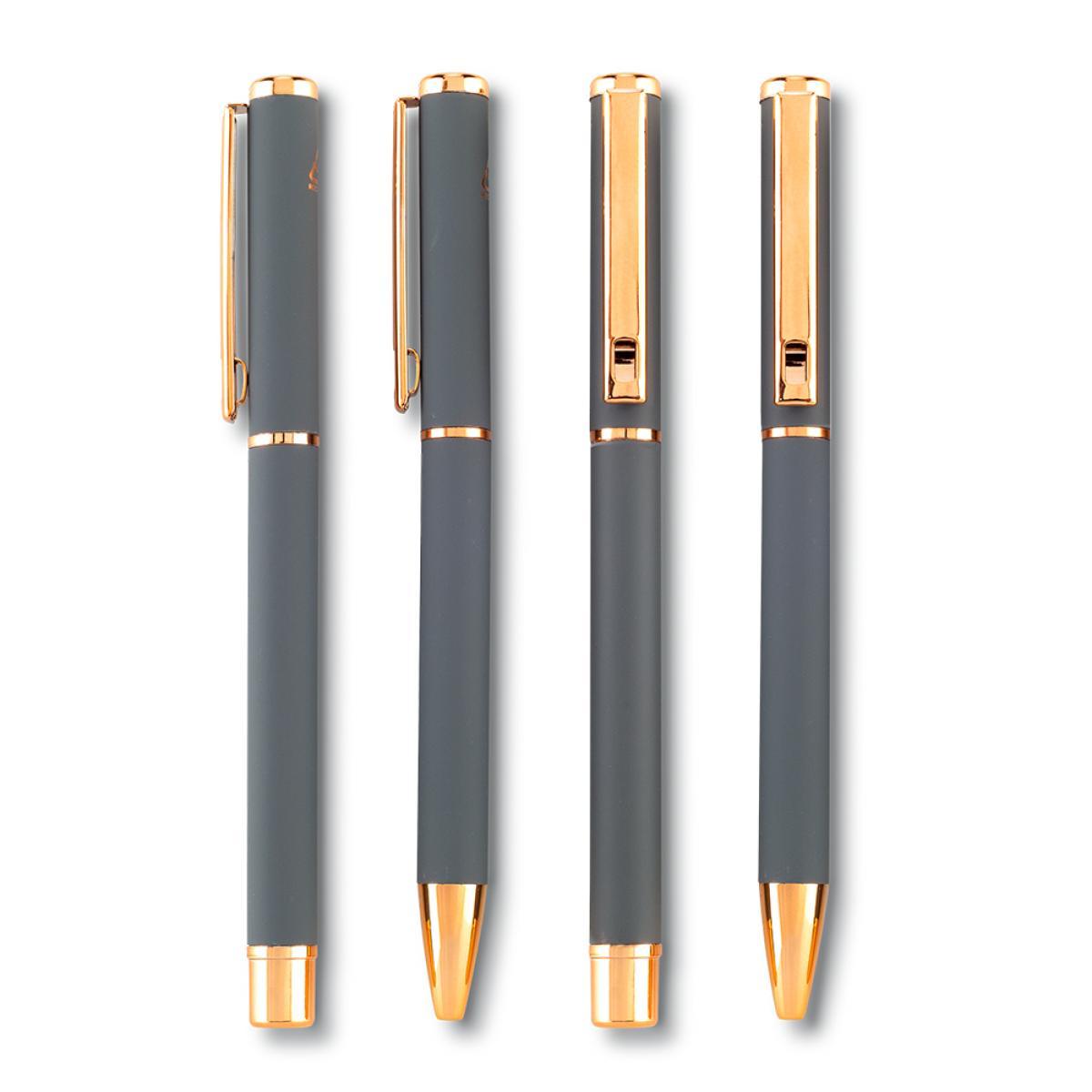 El Set de Bolígrafos Emblem ofrece elegancia y calidad en cada trazo. Incluye un bolígrafo tipo roller y otro con mecanismo giratorio (twist), ambos fabricados en metal con un acabado sofisticado. Su diseño equilibrado garantiza una escritura suave y cómoda. Presentado en caja individual, es el regalo ideal para ejecutivos o detalles corporativos con estilo.