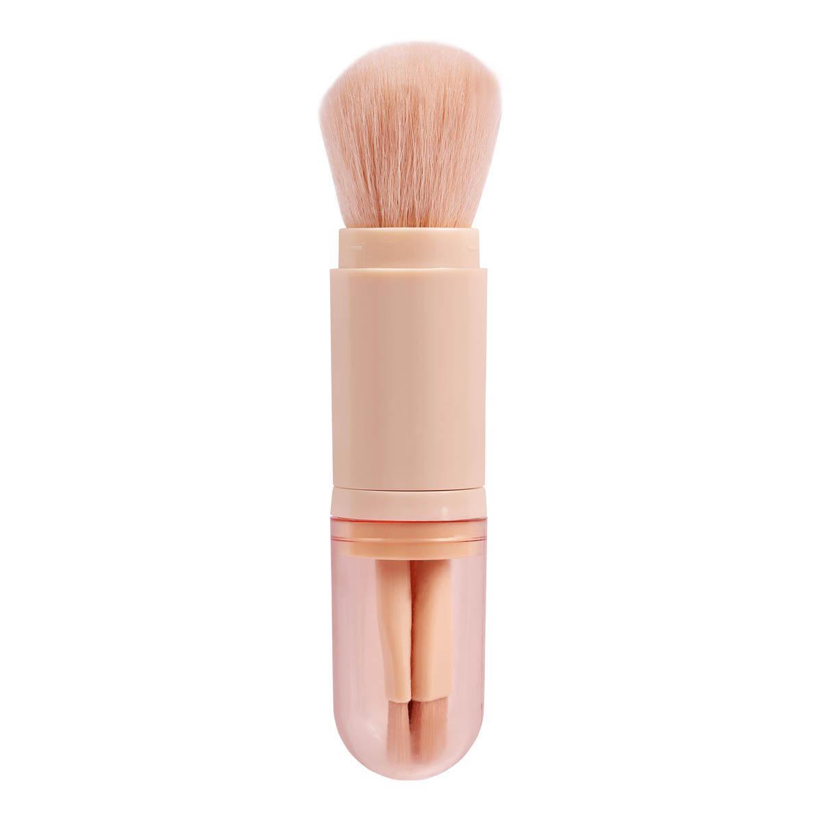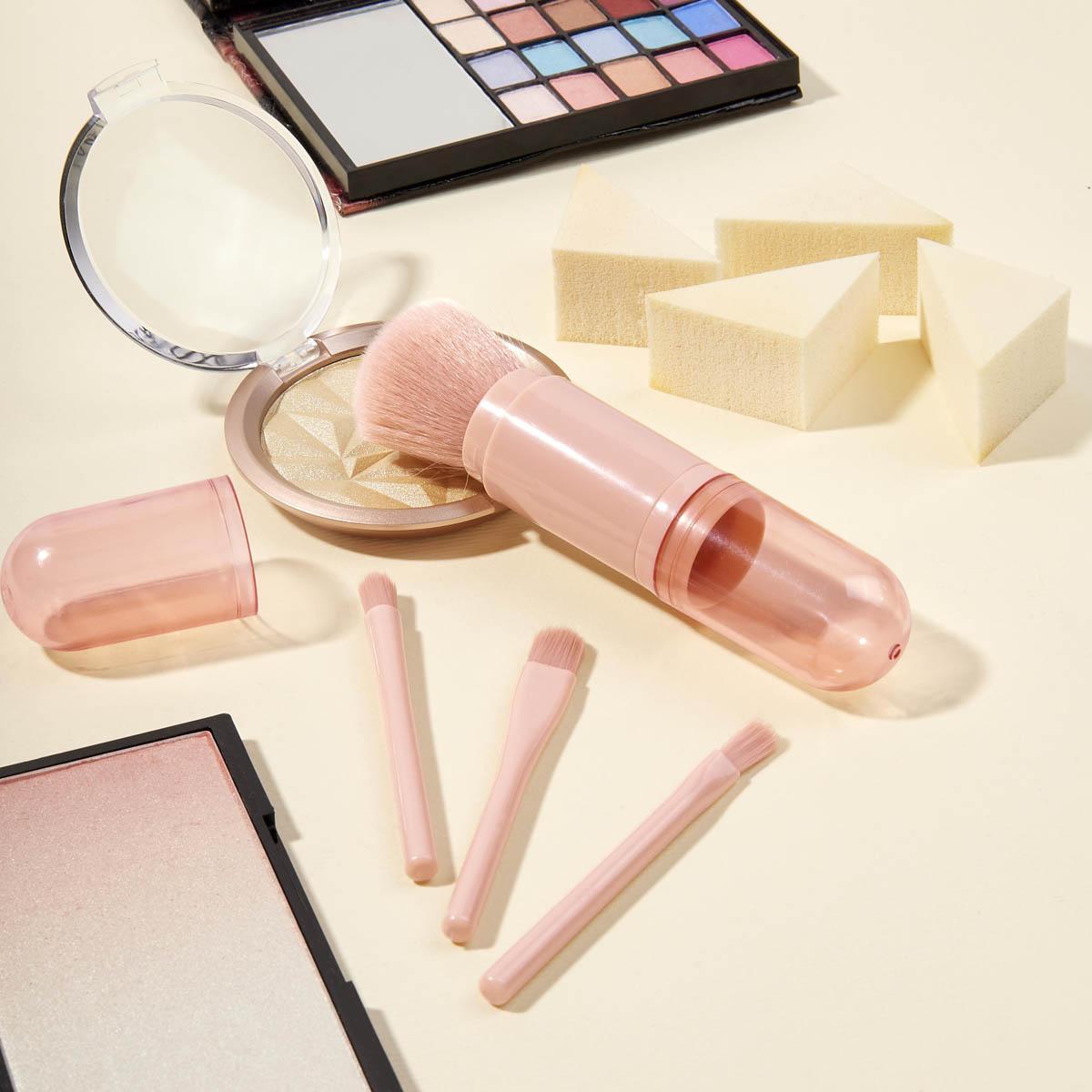 Set de brochas para maquillaje 4 en 1. Este kit innovador ahorra espacio sin sacrificar lo esencial. Incluye brocha para aplicar rubor, 2 brochas de diferente grosor para la aplicación de sombras y brocha para labios. Su diseño retráctil lo hace fácil de guardar y su practico estuche te ayuda a mantenerlos protegidos.