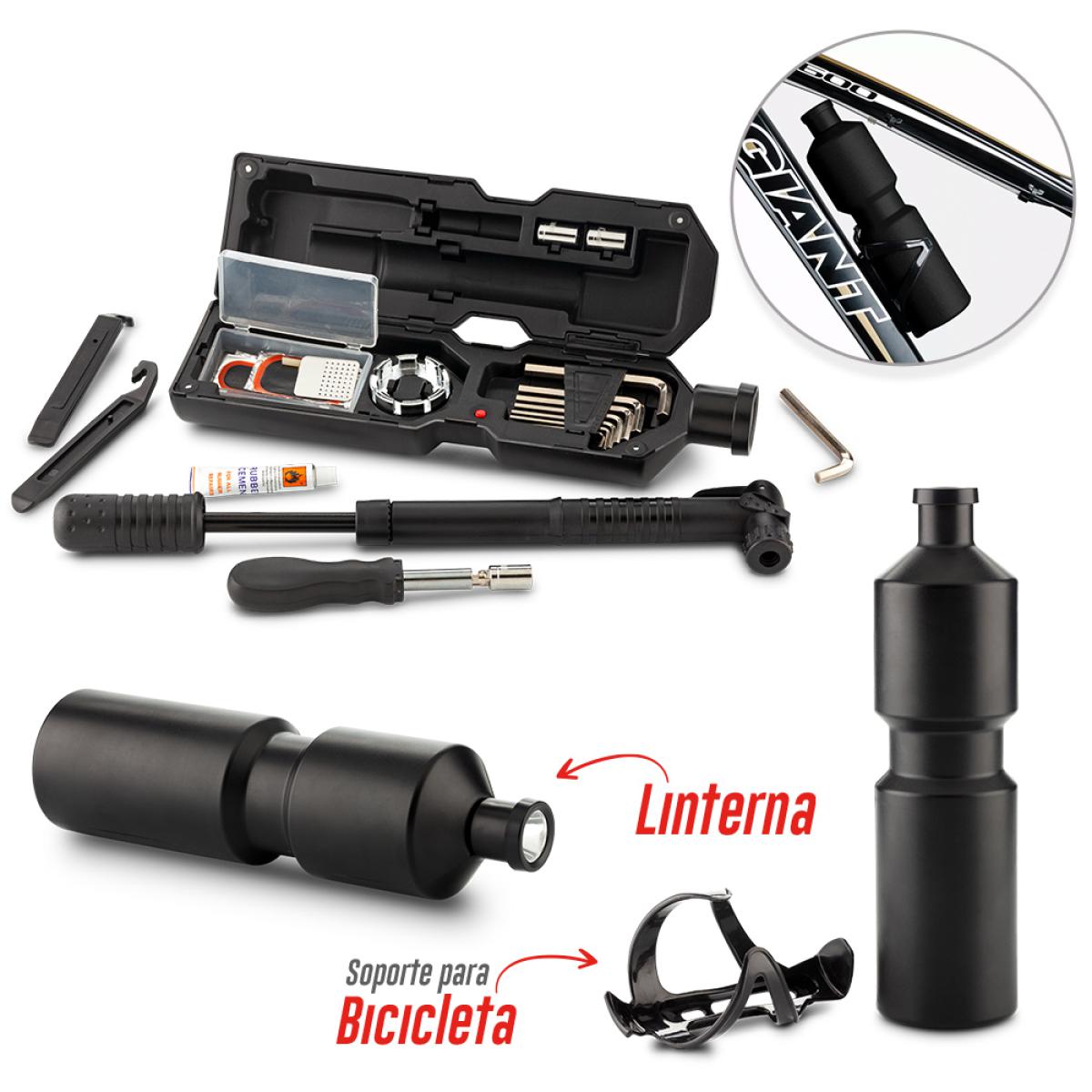 El Set de Herramientas Bottle Bike es un completo kit de 30 piezas diseñado para bicicletas. Viene en un estuche de plástico que incluye una linterna con capacidad para 3 pilas AAA (no incluidas). Con medidas de 29 cm de largo y 7.8 cm de diámetro, este set es ideal para los amantes del ciclismo que buscan herramientas de calidad y portátiles.