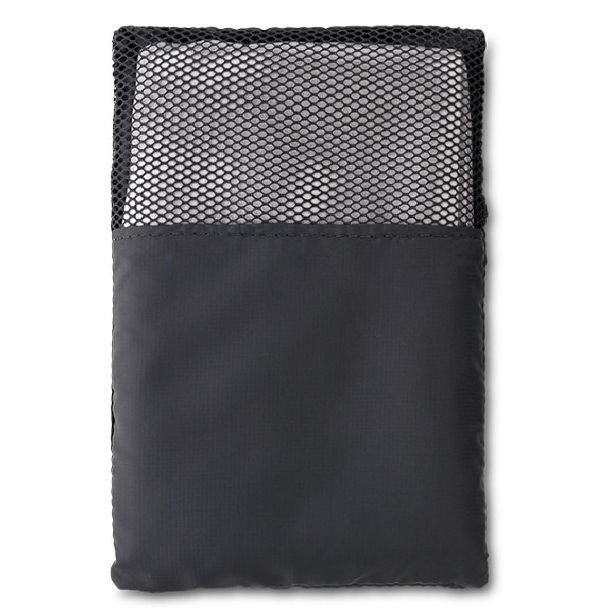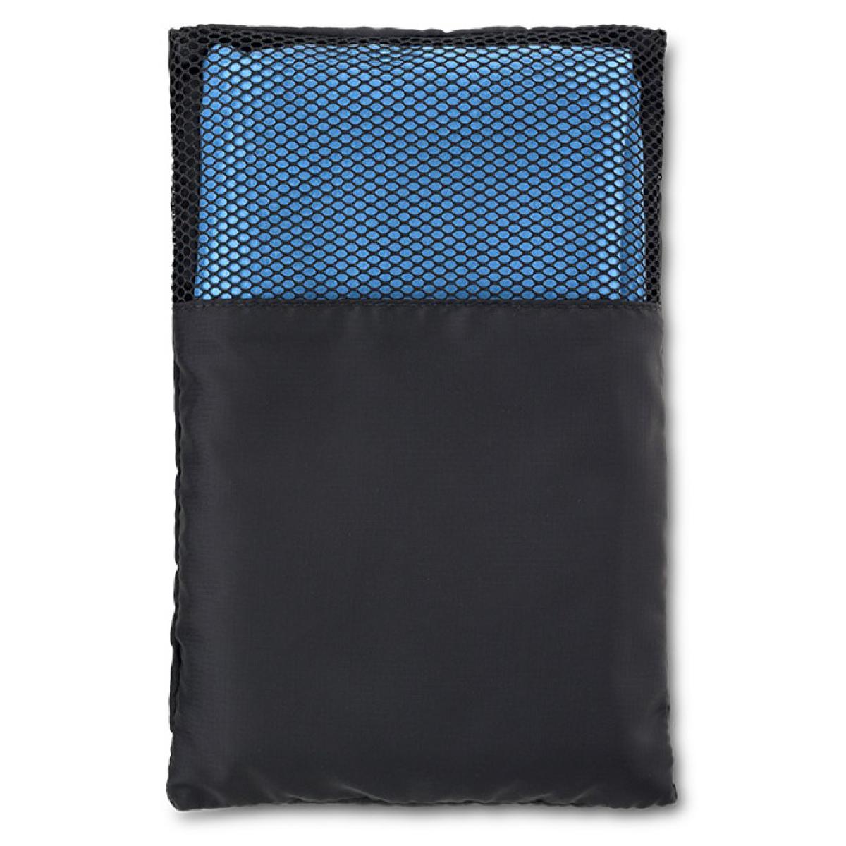 Toalla en microfibra especial con 87.92% poliéster y 12.08% poliamida. Secado rápido, ligera y antibacterial. Ideal para gimnasio, paseos, viajes y deporte. Incluye bolsa de poliéster para transporte.